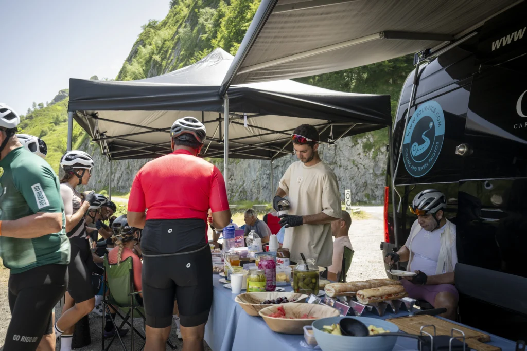 En cada etapa tendrás, como mínimo, un punto de avituallamiento completo: bebidas, sándwiches, frutas, frutos secos, café, dulces y productos locales. El otro vehículo te acompañará durante todo el recorrido con bebidas frías y alimentos adicionales (fruta, barritas energéticas).